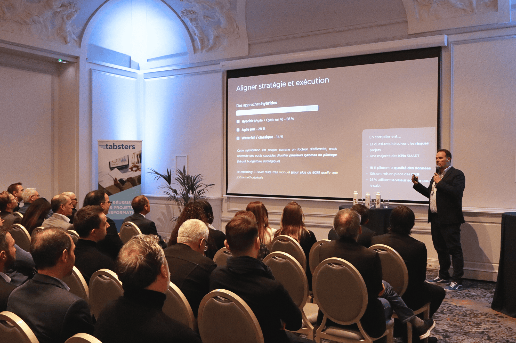 On November 20, 2025, Tabsters brought together over a hundred project, program and portfolio management professionals at the Hôtel du Louvre for an exceptional evening: the official presentation of the 2025 Barometer results, accompanied by keynotes from experts on the growing impact of artificial intelligence on project management.